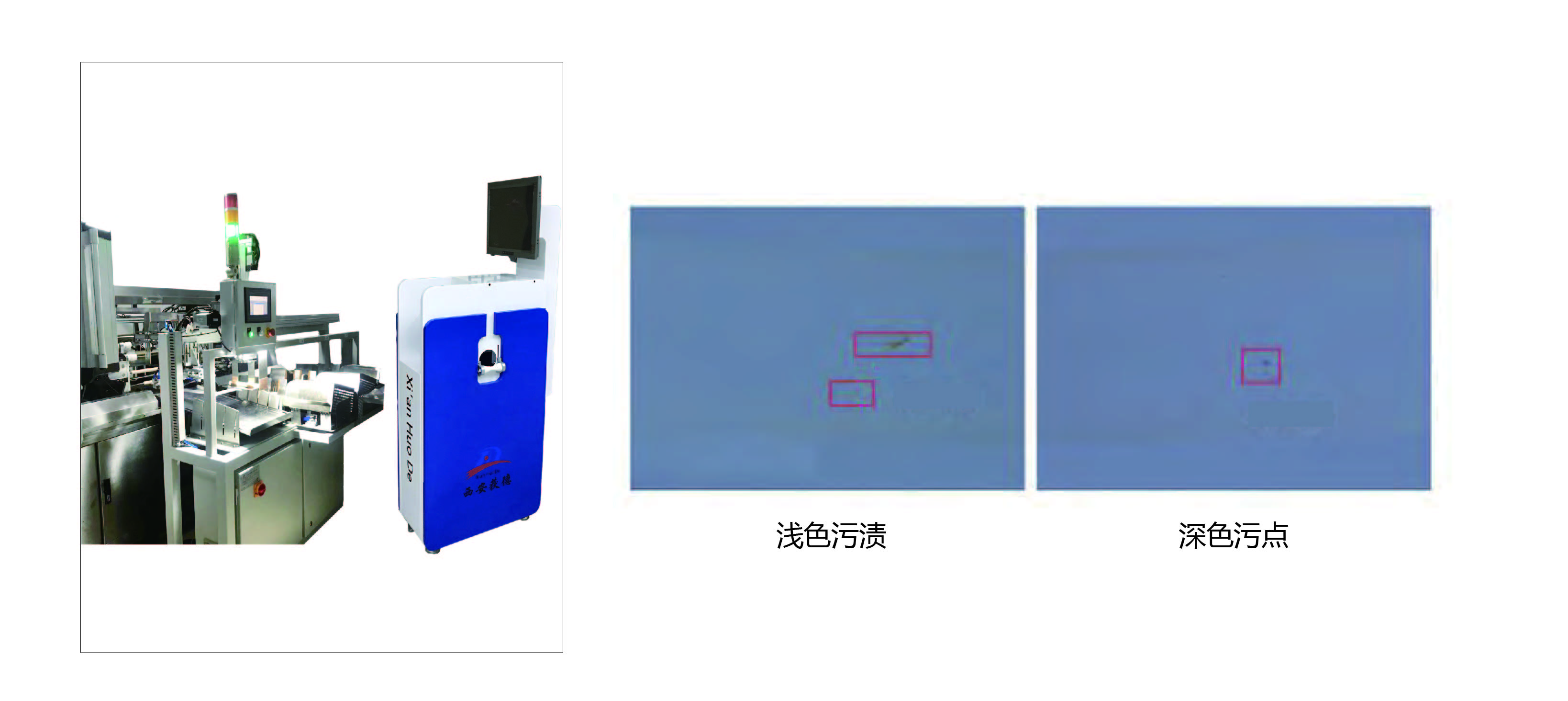1、缺陷檢測:根據實際的生產需求,檢測算法對斑點,毛發,污漬等類型的缺陷進行檢測。