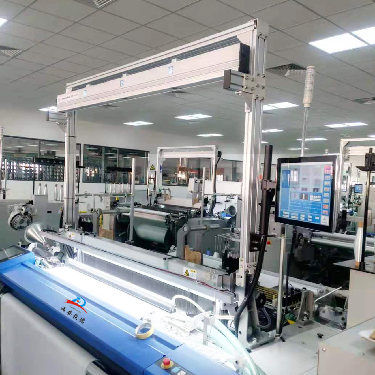 織機疵點在線檢測系統安裝在織機織口部位,對織物進行連續不間斷圖像檢測,及時發現各種疵點,對嚴重的織疵,停機告警并由人工處理,對可忍受的紗疵做統計和記錄,以作為等級評定的原始數據,這樣可大程度的減少疵點對最終織物的影響,甚至可以做到織出的布就是合格品,不用再驗布和修布,可以在上位機打印或拷貝本卷布的數據文件,直接出廠,減少流程,降低成本。