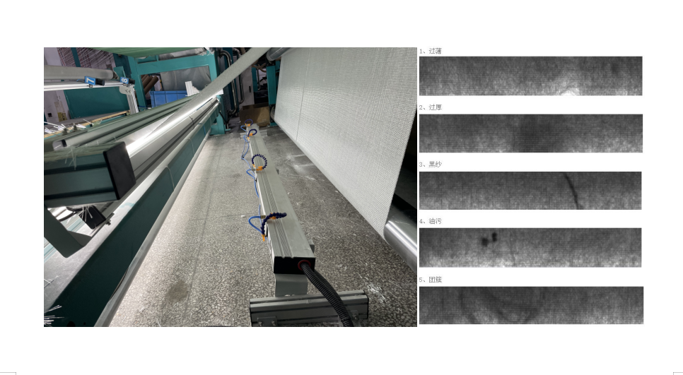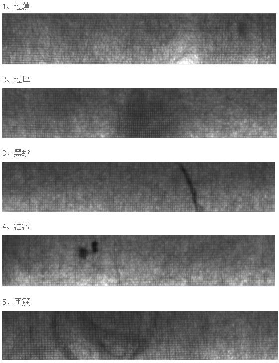 檢測缺陷:縫邊氈過薄、過厚、油污、黑紗、孔洞、團(tuán)簇等;